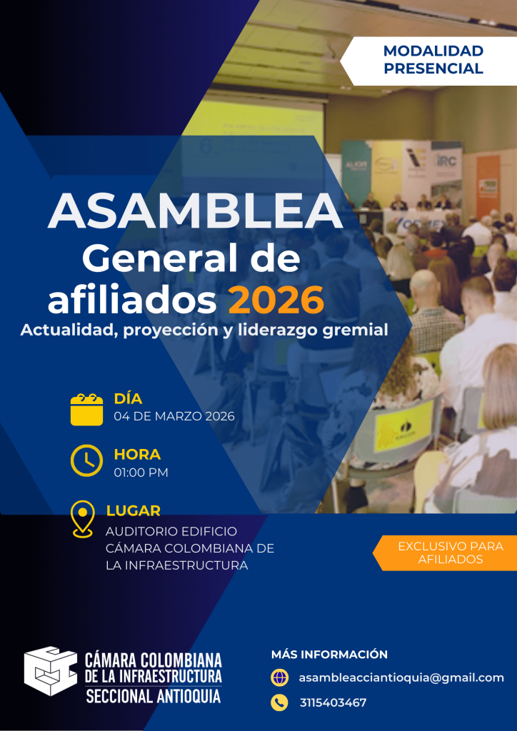 “Balance, proyección y liderazgo gremial” Espacio institucional en el que se presenta el informe de gestión 2025, se realiza la elección de la Junta Directiva 2026–2027 y se ofrece un análisis especializado sobre la actualidad y proyecciones del sector infraestructura en Colombia.